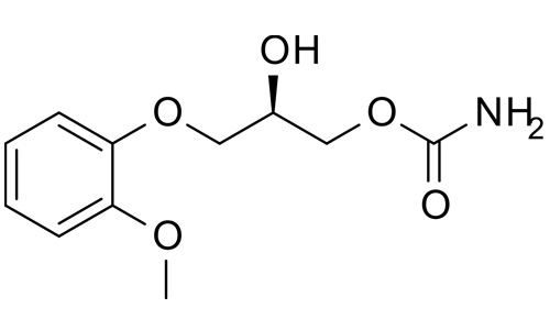 Methocarbamol is a central muscle relaxant used to treat skeletal muscle spasms. Under the trade name Robax, it is marketed by Actient Pharmaceuticals in the United States and Pfizer in Canada. The mechanism of action of methocarbamol is currently unknown, but may involve the inhibition of carbonic anhydrase.[2] The muscle relaxant effects of methocarbamol are largely attributed to central depressant effects;[3] however, peripheral effects of methocarbamol to prolong muscle refractory period have also been reported.[4]
